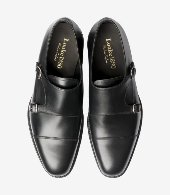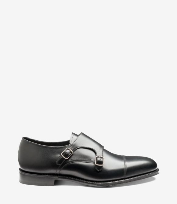 Premium double buckle monk shoe, made in England. Cannon is available in dark brown burnished calf and black calf leathers.