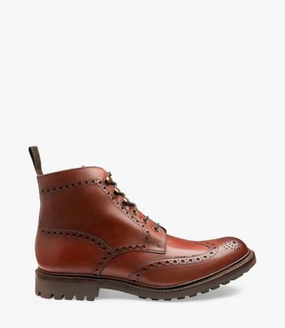 Premium ski hook lace-up boot, featuring a Goodyear welted ‘Commando’ rubber sole and a bellowed tongue to help prevent water penetrating the lace area. Glendale uses the ‘Pennine’ G last shape for a generous wide fit, made with Conker brown calf upper leather, Glendale is made England.