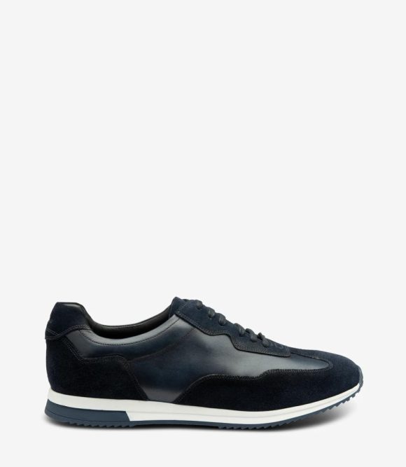 Our ‘Linford’ is a premium Calf Leather & Suede Trainer, featuring cemented rubber soles for greater longevity and grip. Linford uses the ‘trainer’ last shape, and is available in a ‘f’ fitting. These men’s shoes are designed and engineered in Northamptonshire, England, and handmade in our high-grade factory in India.